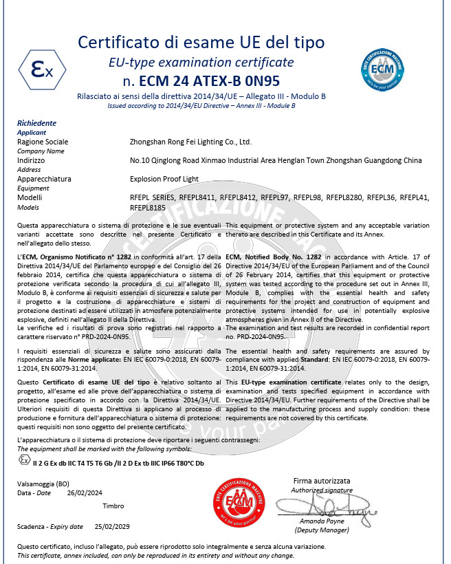 Πρότυπο: ATEXΑριθμός:Ημερομηνία Έκδοσης: 2024-02-26Ημερομηνία λήξης: 2029-02-25